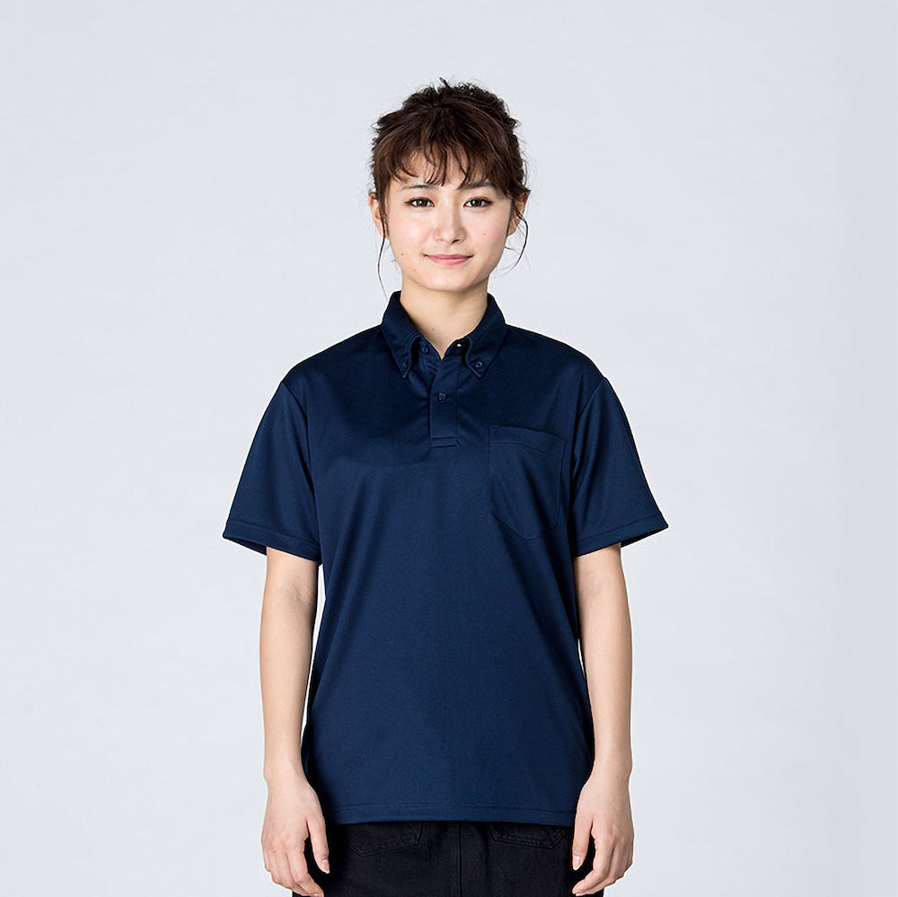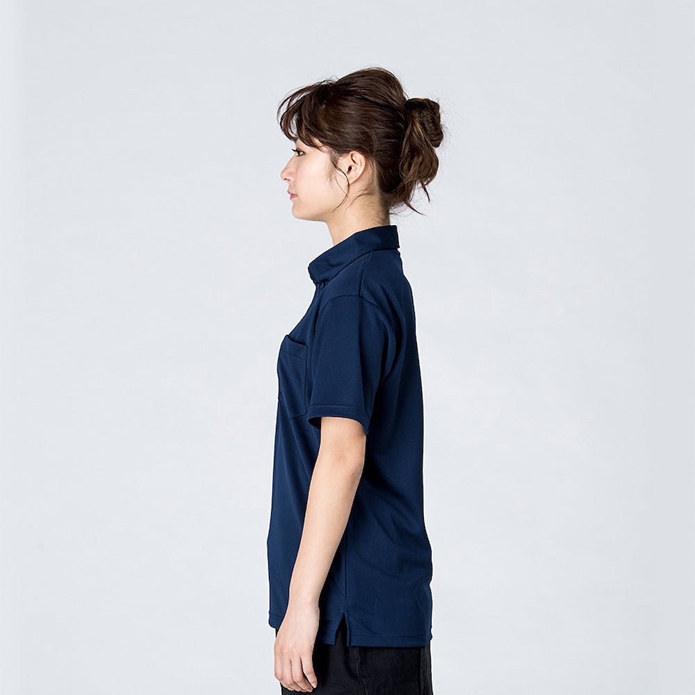 抜群の吸水速乾性と何度も洗濯しても型崩れせず、色褪せもしにくい生地は長く愛用できます。IDカードホルダーなどを収納できるポケット付きはカジュアルユニフォームに最適な1枚です。